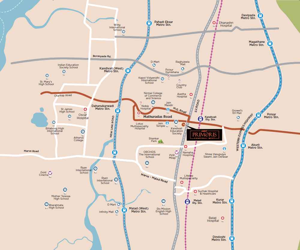 Ambit Primoris Kandivali West is a Project by Ambit Realtors & Developers situated in the most premium location of Kandivali West, SV road, Bhagat Colony offers 2, 3 & 4 BHK Flats with the availability of Jodi Apartments. Also get the Floor Plan, Price Sheet, RERA ID, Reviews, Possession Timeline, Construction Status, Location Advantages, Address, Amenities & Specifications. Ambit Realtors & Developers Kandivali West has an Exclusive Tower of G+22 Storeys. Ambit Realtors & Developers Kandivali West Property Features Amenities like an Infinity Swimming Pool, Gymnasium & Yoga Deck, Multipurpose Hall, Landscape Garden, Reading Deck, and Toddler’s Play Area. Ambit Primoris Kandivali West Has Excellent Connectivity to Kandivali Station, Dahanukar Wadi Metro, Western Express Highway, Raghuleela & Growel’s 101 Malls, Namaha & Lotus Hospitals, Billabong, Thakur & KES Schools.